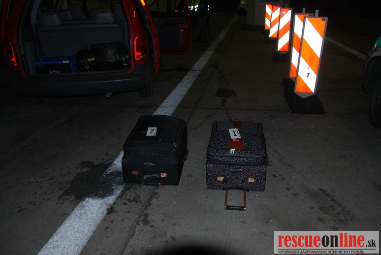 Následnou vykonanou prehliadkou vozidla bolo zistené, že práve v cestovnej batožine sa nachádzali podozrivé látky. V cestovných kufroch boli uložené po dve hermeticky uzatvorené igelitové vrecia s obsahom sušeného rastlinného materiálu s celkovou hmotnosťou 20 kg.