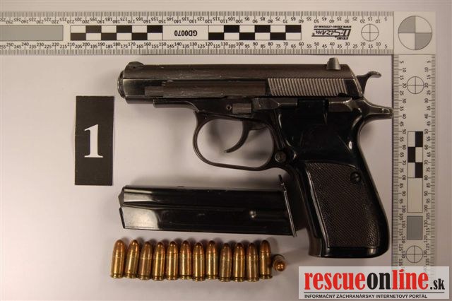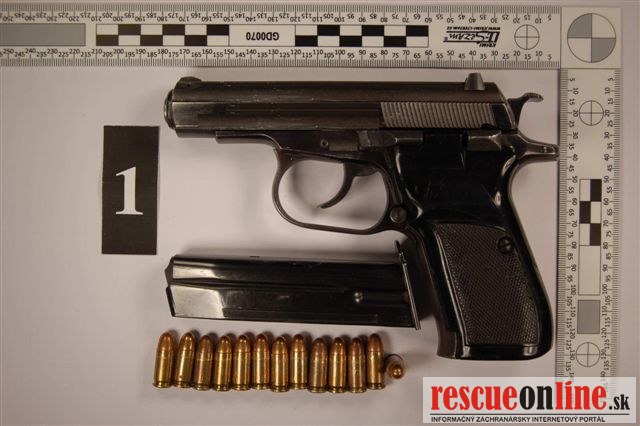 KRPZ Žilina |MM| Vyšetrovateľ Okresného riaditeľstva Policajného zboru v Žiline obvinil 44 ročného Ľubomíra (zo Žiliny) zo zločinu a prečinu nedovoleného ozbrojovania a obchodovania so zbraňami, zločinu vydierania, zločinu lúpeže a prečinu nebezpečného vyhrážania. Obvinený muž v noci zo štvrtka na piatok (z 24. októbra na 25. októbra) v žilinskej reštaurácii vytiahol pištoľ, ktorú mal v nelegálnej držbe. Čašníčke (20 ročná) sa vyhrážal zabitím a opakovane jej prikázal pobozkať prsteň, čo z obavy o svoj život a zdravie aj vykonala. Pri vychádzaní z priestoru reštaurácie priložil pištoľ k telu 20 ročného zákazníka, so slovami či chce dostať. Po odchode z reštaurácie nastúpil do taxíka, ktorý riadil 34 ročný muž. Obvinený muž počas jazdy opakovane mieril pištoľou na taxikára a vulgárne sa ho pýtal či ho má zastreliť. Po zastavení na ul. Hviezdoslavovej v Žiline taxikár žiadal od obvineného platbu za využité služby. Ten mu však priložil pištoľ k hrudi a žiadal od neho 10.-€. Taxikár mu z obavy o svoj život dal 5.-€. Obvinený muž z taxíka vystúpil a vošiel do blízkej herne. Na 30 ročnú prevádzkarku v herni mieril pištoľou, potom čo chcela telefonovať. Povedal jej, aby nikam nevolala a vyhrážal sa jej zastrelením. Potom však zbraň na jej žiadosť odložil. Za barom prevádzkarku následne vystriedal kamarát. Ona vyšla von a telefonicky vec oznámila na políciu. Po prijatí oznámenia bola okamžite na miesto vyslaná policajná hliadka z oddelenia železničnej polície Policajného zboru v Žiline. Policajti po príchode na miesto vykonali služobný zákrok a zadržali obvineného muža, ktorého predviedli na policajný útvar. Taktiež mu zaistili pištoľ, 13 kusov nábojov aj nôž s 15 cm čepeľou. Obvinený muž sa odmietol podrobiť dychovej skúške. Po opakovanej výzve sa dychovej skúške neskôr podrobil s pozitívnym výsledkom 0,74 mg/l alkoholu v dychu. Počas uvedeného konania k zraneniu osôb nedošlo. Zaistená pištoľ a náboje budú podrobené expertíznemu skúmaniu.