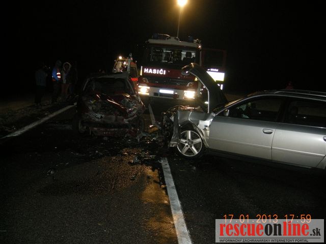 KRPZ Žilina |MM| Vo štvrtok 17. januára podvečer došlo na ceste I/59 medzi obcami Podbieľ a Krivá k dopravnej nehode. 24 ročný vodič z Tvrdošína jazdiaci na vozidle Hyundai Accent v smere na obec Krivá v rovnom úseku cesty predchádzal nákladné motorové vozidlo v úseku cesty, kde sa nachádza plná súvislá deliaca stredová čiara. Vodič sa nestihol zaradiť pred predchádzané vozidlo, pričom došlo k čelnej zrážke s oproti jazdiacim vodičom vozidla Audi A6. Pri dopravnej nehode sa ťažko zranil 24 ročný vodič vo vozidle Hyundai Accent a jeho štyria spolujazdci vyviazli predbežne s ľahkými zraneniami. Hmotná škoda na vozidlách je odhadnutá na cca 7.000,-€. Poverený príslušník PZ začal trestné stíhanie vo veci prečinu ublíženia na zdraví. Okolnosti dopravnej nehody sú predmetom vyšetrovania.