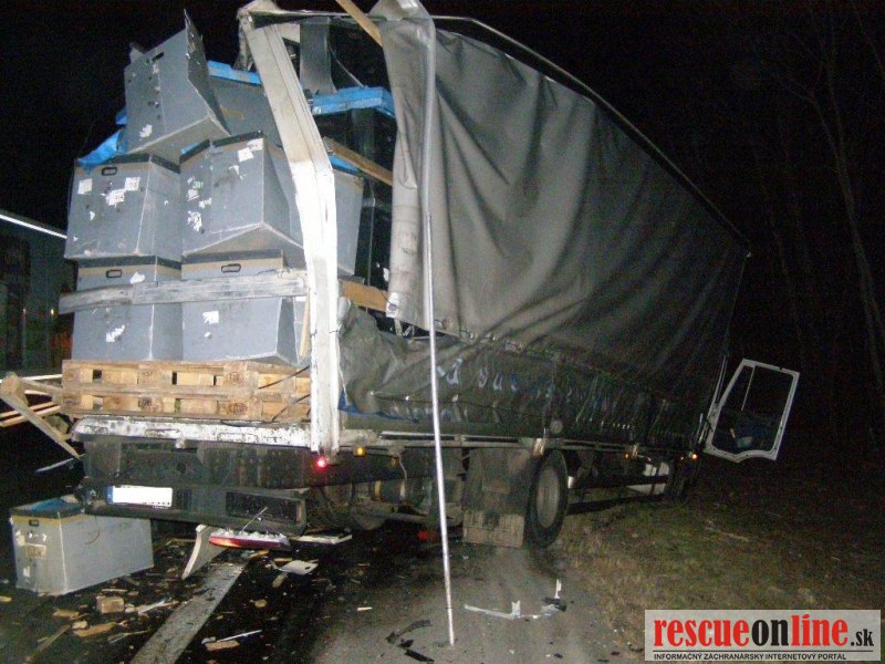 KRPZ Trnava | K dopravnej nehode dvoch kamiónov došlo včera (7.3.) po dvadsiatej tretej hodine na diaľnici D1 pri Červeníku v smere od Hlohovca na Piešťany. Poľský kamión, ktorý viedol 41 ročný vodič, bol pravdepodobne pre poruchu odstavený pri krajnici. Prichádzajúci 42 ročný vodič z Česka so slovenským kamiónom si odstavenú nákladnú súpravu neskoro všimol a pravou prednou časťou narazil do jej ľavej zadnej časti. V dôsledku nárazu boli oba kamióny odhodené do priekopy vpravo a zároveň bol zablokovaný pravý jazdný pruh. Poľský kamión bol odstránený z cesty ráno okolo tretej hodiny. Na odstránení slovenského kamióna sa ešte stále pracuje. Pri nehode utrpel český vodič ľahké zranenia, poľský vodič sa nezranil. Dopravná nehoda sa zaobišla bez alkoholu. Polícia presné príčiny dopravnej nehody a mieru zavinenia vyšetruje.