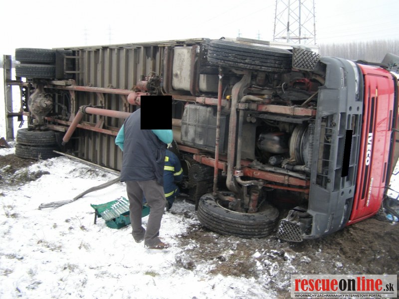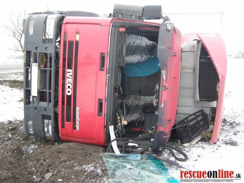 KR HaZZ Trnava |MM| Dňa 11.02.2013 o 14:51 hod. bola na KS IZS v Trnave nahlásená dopravná nehoda nákladného auta a osobného motorového vozidla so zakliesnenou osobou na ceste I. triedy č. 63 za Dunajskou Stredou smerom na Šamorín v blízkosti kračanskej križovatky. K udalosti bola vyslaná hasičská jednotka z Dunajskej Stredy (5 príslušníkov s technikou AHZS MB ATEGO a MB VARIO). Po príchode HaZZ bolo prieskumom veliteľa zásahu zistené že, na jednej strane vozovky v priekope je prevrátené nákladné vozidlo Iveco a na druhej strane v priekope je osobné vozidlo Škoda Fabia so zakliesnenou osobou. Príslušníci zakliesnenú osobu vyslobodili zariadením Holmatro a asistovali záchrannej zdravotnej službe pri naložení pacienta do sanitky. Na miesto zásahu bola privolaná vrtuľníková zdravotná záchranná služba. Príslušníci HaZZ navigovali vrtuľník na pristátie na komunikácii č. 63, na ktorej bola zastavená premávka. Príslušníci ďalej asistovali pri preložení pacienta zo sanitky do vrtuľníka. Z nákladného vozidla vystúpil vodič bez zranenia. Pri udalosti nedošlo k úniku prevádzkových kvapalín. Na vozidlách boli vykonané protipožiarne opatrenia a komunikácia bola očistená od úlomkov.