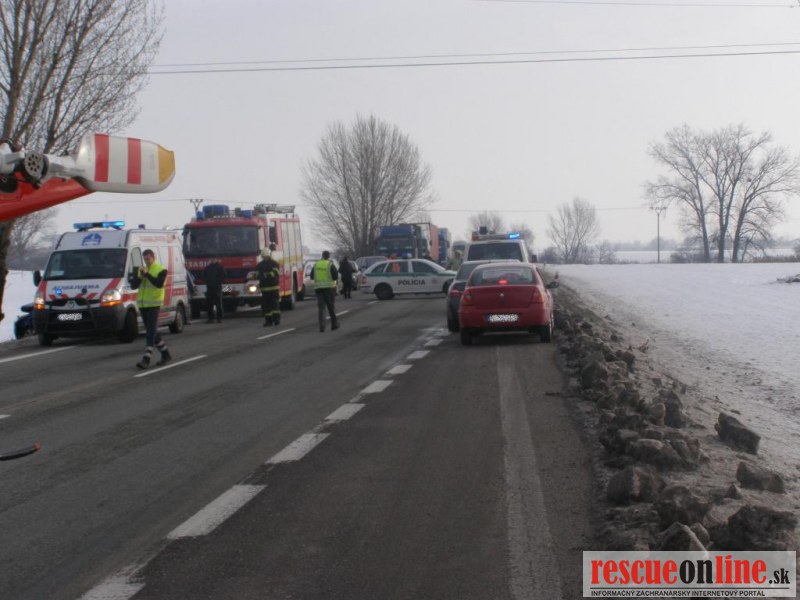 KR HaZZ Trnava |MM| Na ohlasovňu požiarov OR HaZZ v Dunajskej Strede bola dňa 16.2.2013 o 08:16 hod. ohlásená prostredníctvom KS IZS v Trnave dopravná nehoda osobného motorového vozidla na štátnej ceste č. I/63 na obchvate mesta Dunajská Streda od obce Kútniky v smere na Gabčíkovo. Na miesto udalosti boli vyslaní štyria príslušníci z hasičskej stanice v Dunajskej Strede s technikou MB ATEGO. Po príjazde na miesto udalosti bolo zistené, že sa jedná o dopravnú nehodu osobného motorového vozidla značky Hyundai i10, ktoré narazilo do stromu, pričom vo vozidle sa na strane spolujazdca nachádzal zranený vodič. Príslušníci HaZZ asistovali pracovníkom Zdravotnej záchrannej služby pri vyslobodzovaní zraneného vodiča z havarovaného vozidla pomocou tzv. chrbticovej dosky, pričom zranená osoba bola následne naložená do vozidla ZZS, kde službukonajúci lekár po vyšetrení zranenej osoby rozhodol o privolaní vrtuľníka Leteckej záchrannej služby. Zasahujúci hasiči následne vykonali na havarovanom vozidle protipožiarne opatrenia a do príchodu príslušníkov PZ SR usmerňovali dopravu. Po prílete vrtuľníka LZS hasičská jednotka pomáhala pri preložení zranenej osoby zo sanitného vozidla do vrtuľníka a po jeho odlete asistovala pri nakladaní havarovaného vozidla na vozidlo odťahovej služby. Zároveň boli na vozovke zneutralizované a pozbierané uniknuté prevádzkové kvapaliny. Po zdokumentovaní udalosti a zbalení vecných prostriedkov sa hasičská jednotka vrátila o 9:48 hod. na svoju základňu.