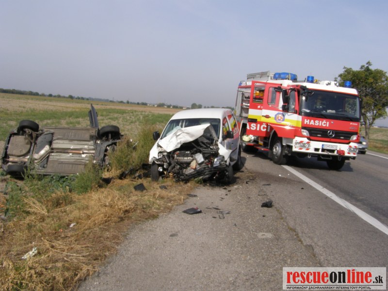 KR HaZZ Trnava |MM| Na HS v Šamoríne bola dňa 21. 9. 2012 o 09.23 hod prostredníctvom KS IZS v Trnave nahlásená udalosť – dopravná nehoda 2 osobných motorových vozidiel so zakliesnenou osobou na štátnej ceste I/63, k.u. Báč (okres DS). Príslušníci HaZZ vykonali výjazd s hasičskou technikou AHZS MB Atego s 3 príslušníkmi a OHZ Šamorín s technikou MB Vario s 3 členmi. Po príjazde na miesto udalosti bolo prieskumom zistené, že sa jedná o dopravnú nehodu 2 OMV. Prvé OMV Volkswagen Caddy sa nachádzalo na kraji cesty a druhé OMV Citroen C4 bolo prevrátene na bok v priekope, v ktorom sa nachádzala zakliesnená osoba. Príslušníci do príjazdu ZZS poskytli osobám predlekársku prvú pomoc, prevrátené vozidlo zabezpečili proti vzniku požiaru a proti pohybu zaisťovacími klinmi. Po zabezpečení vozidla vyslobodili zakliesnenú osobu z osobného motorového vozidla pomocou vyslobodzovacieho zariadenia Holmatro a Backboardu. Počas zásahu bol uzavretý 1 jazdný pruh smerom do Dunajskej Stredy a premávka vozidiel bola riadená príslušníkmi polície SR. Po zdokumentovaní miesta udalosti, pomoci pri naložení havarovaných vozidiel na vozidlá odťahovej služby a očistení cestnej komunikácie od úlomkov a uniknutých prevádzkových kvapalín sa jednotka HaZZ o 12.24 hod. vrátila bez zranenia príslušníkov a poškodenia hasičskej techniky na základňu