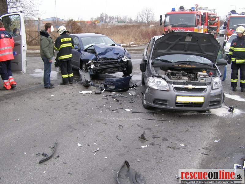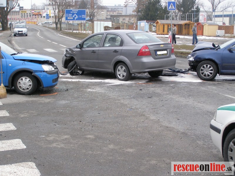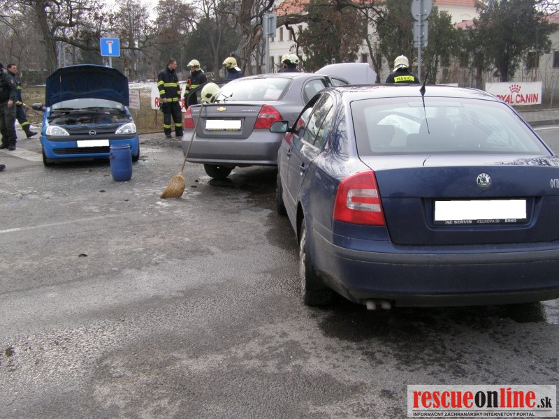KR HaZZ Trnava |MM| Na operačné stredisko KR HaZZ v Trnave bola v nedeľu 19. februára 2012 o 11:32 hod. nahlásená dopravná nehoda troch osobných motorových vozidiel na Cukrovej ul. v Trnave s neurčeným počtom zranených osôb. Na miesto určenia boli z hasičskej stanice Trnava vyslaní ôsmi príslušníci HaZZ s technikou MB Vario a MB Atego. Po príjazde na miesto udalosti bolo zistené, že na mieste nehody sa v priestore križovatky nachádzali tri osobné motorové vozidlá, Opel Corsa, Chevrolet Aveo a Škoda Octávia. Pri nehode sa zranili tri osoby. Dve zranené osoby nachádzali vo vozidlách, ktorým príslušníci HaZZ poskytli predlekársku pomoc a pomohli im vystúpiť z vozidiel. Jedna zranená osoba sa nachádzala mimo vozidla. Ďalej príslušníci zabezpečili vozidlá proti pohybu, možnému vzniku požiaru a zasypali uniknuté prevádzkové kvapaliny sorbentom. Po zdokumentovaní nehody príslušníkmi PZ, príslušníci HaZZ havarované vozidlá odtlačili mimo križovatku a po príchode odťahovej služby pomohli naložiť vozidlá a dočistili komunikáciu. Jednotka sa po ukončení zásahu o 12:47 hod. vrátila na základňu.