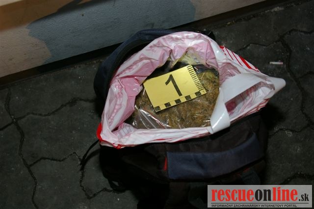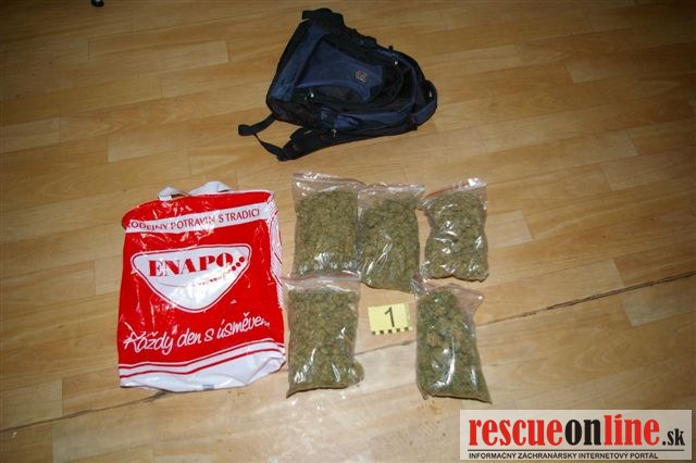 KRPZ Trnava |MM| Vyšetrovateľ obvinil 37 ročného muža z Trnavy z drogovej trestnej činnosti. Obvinený muž s 36 ročným kamarátom kráčal 23. januára pred druhou hodinou ráno po ulici V. Clementisa v Trnave. Po tom, ako zbadali prichádzajúcu hliadku pohotovostnej motorizovanej jednotky odložil 37 ročný muž za blízke smetiaky ruksak, ktorý mal pri sebe. Potom chceli z miesta ujsť. Hliadka ruksak prezrela a zistila, že sa v ňom nachádza zelená rastlinná sušina. Následne mužov ako aj ruksak zaistila. Sušinu policajti zaslali na expertízu ktorá potvrdila, že sa jedná o marihuanu, z ktorej by bolo možné vyrobiť až 990 jednorazových dávok drogy. Obvinený 37 ročný muž sa momentálne nachádza vo väzbe. V prípade dokázania viny mu za tento skutok hrozí trest odňatia slobody na štyri až desať rokov.