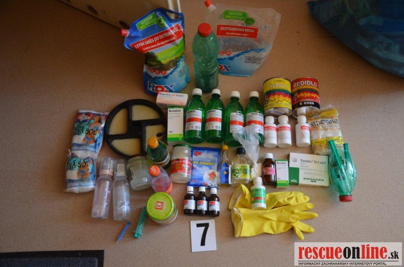 Vykonaním troch domových prehliadok a nebytových priestorov boli ďalej zaistené chemické látky a lieky potrebné na výrobu prekurzorov omamných látok, digitálne váhy, injekčné striekačky a iné predmety využívané k baleniu pervitínu.