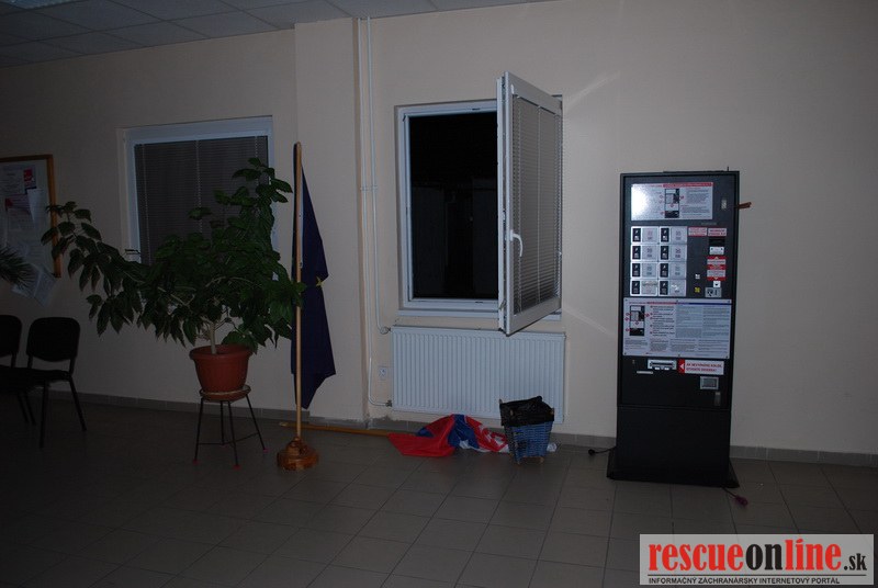 KRPZ Nitra |MM| V utorok 8.5.2012 asi o 22.00 hod. sa páchateľ dostal do oploteného areálu jedného komárňanského úradu. Vypáčil si plastové okno na prízemí a dostal ku kolkomatu vo vestibule, ktorý sa pokúšal násilím otvoriť. Bol by sa dostal ku kolkom a hotovosti v celkovej hodnote bezmála 4000,-€. Zabránili mu v tom však komárňanskí policajti spolu s nitrianskymi kukláčmi, pretože mali operatívne informácie o plánovanom vlámaní.