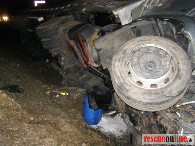 KR HaZZ Trnava |MM| Na ohlasovňu požiarov HS Kúty bola v utorok 20. marca 2012 o 03:27 hod. z KS IZS v Trnave ohlásená dopravná nehoda nákladného automobilu na 11,5 km diaľnice D2 v smere na Brno. Na miesto bola vyslaná aj jednotka HS Malacky. Na miesto udalosti bola vyslaná jednotka HaZZ, traja príslušníci s technikou MB Vario. Po príjazde na miesto nehody bolo prieskumom zistené, že havarované vozidlo Renault Premium EC /Maďarská republika/ sa nachádza na ľavom boku v priekope a na mieste už bola prítomná jednotka HaZZ z HS Malacky, dvaja príslušníci s vozidlom MB Atego a diaľničná polícia. Vodič nákladného vozidla bol mimo vozidla bez zranení a z vozidla unikala nafta. V nákladnej časti vozidla boli prevážané oceľové výrobky. Z havarovaného vozidla uniklo cca 5l nafty z poškodenej palivovej hadice, ktorú príslušníci HaZZ utesnili tmelom a zabránili ďalšiemu úniku. Miesto úniku bolo zasypané sorpčným materiálom. Odpojenie akumulátora nebolo možné, pretože k nemu nebol možný prístup. Na miesto sa dostavili pracovníci údržby diaľnic. Príslušníci HaZZ z HS Malacky sa vrátili na základňu. Havarované vozidlo nebránilo v plynulosti cestnej premávky. Po zadokumentovaní miesta udalosti, vykonanom záverečnom prieskume a odovzdaní miesta udalosti diaľničnej polícii a údržbe diaľnic Malacky sa jednotka HS Kúty o 05:14 hod. vrátila na základňu.