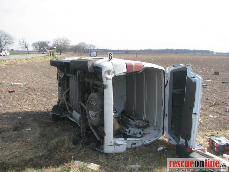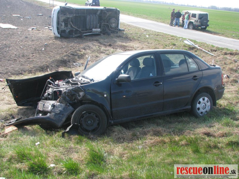 KRPZ Trnava |MM| Polícia vyšetruje dopravnú nehodu, ktorá sa stala 19. marca, krátko pred desiatou hodinou, na križovatke ciest I/63 a III/57211 pri obci Vieska (okr. Dunajská Streda). 26 ročný muž z Dunajskej Stredy viedol vozidlo Mercedes od obce Vieska. Na križovatke nedal prednosť a vošiel do jazdnej dráhy osobnému autu Škoda, ktoré viedol 57 ročný muž z Dunajskej Stredy. Vodič Škody už zrážke zabrániť nedokázala a prednou časťou narazil do pravej bočnej časti Mercedesu, ktorý sa následne prevrátil na pravý bok. Vodič Mercedesu pri dopravnej nehode utrpel zranenia, ktoré si vyžiadali jednorazové ošetrenie. 77 ročná spolujazdkyňa zo Škodovky utrpela ťažké zranenia a z miesta dopravnej nehody ju odviezla letecká záchranná služba. Tretí člen posádky Škody, 25 ročný muž, utrpel zranenia, ktoré si vyžiadali jednorazové ošetrenie. Vodič Škodovky zranenia neutrpel. Alkohol u vodičov zistený nebol. Na vozidlách vznikla škoda 8000,-€. Vo veci bolo začaté trestné stíhanie pre ublíženie na zdraví. V prípade obvinenia konkrétnej osoby hrozí za tento skutok trest odňatia slobody na jeden až päť rokov.