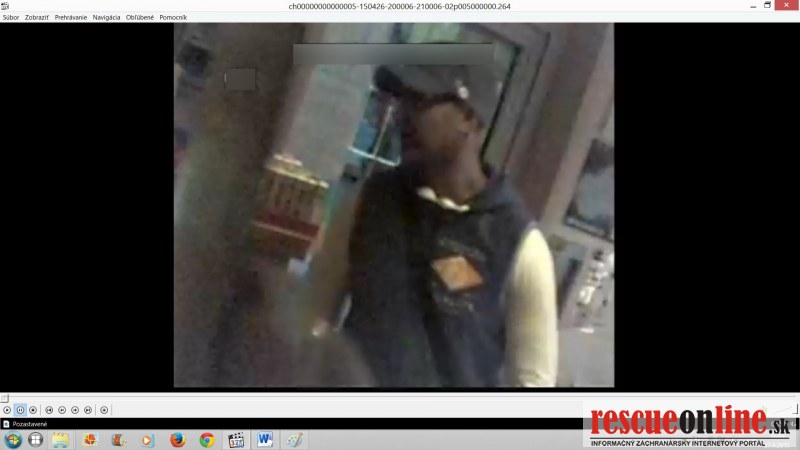 Popis podozrivého muža a jeho oblečenia:180 cm vysoký, strednej postavy, na hlave mal šiltovku tmavej farby, slnečné okuliare, hovoril po česky, oblečenú mal tmavomodrú mikinu s kapucňou, biele tričko s dlhým rukávom, rifle bledomodrej farby, biele tenisky s tmavými pruhmi