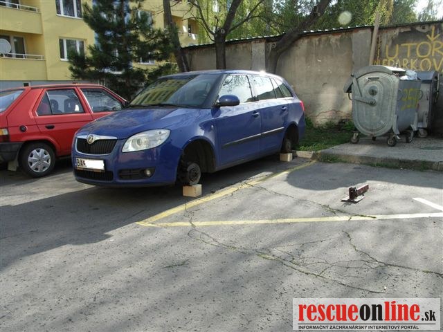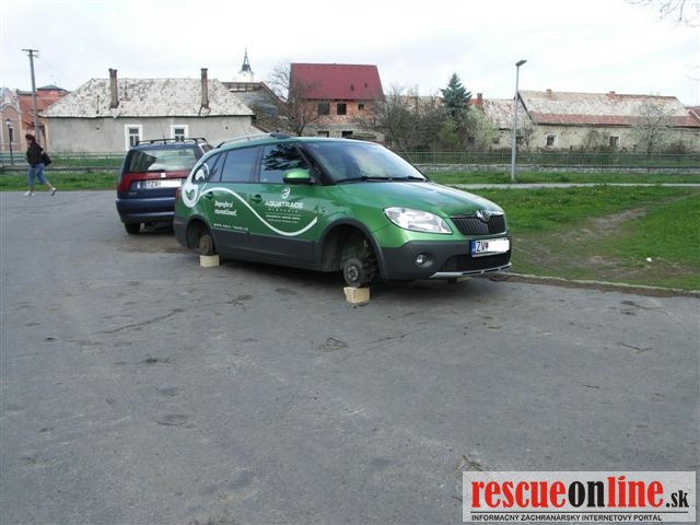 KRPZ Banská Bystrica |MM| Polícia v Krupine pátra po páchateľoch, ktorí v noci z pondelka na utorok (24.4.) ukradli všetky 4 kolesá na 5 motorových vozidlách. Na ulici M. R. Štefánika na parkovisku pred vchodom do bytovky páchateľ ukradol kolesá z motorového vozidla Škoda Fabia. Odmontoval skrutky z kolies, ktoré nechal pri vozidle a brzdovými diskmi ho uložil na drevené hranoly. Ukradol hliníkové disky na ktorých sa nachádzali gumy s letným dezénom. Na ulici Majerský rad páchateľ ukradol kolesá z dvoch vozidiel, zo Škody Fabie a z vozidla Fiat Stilo. Aj tieto vozidlá uložil na drevené hranoly a odmontované skrutky nechal pri vozidlách. Kolesá ukradli aj z ďalších dvoch vozidiel, Škoda Octavia a Volkswagen Golf, ktoré boli zaparkované na Železničnej ulici. Aj majitelia týchto vozidiel si ich našli na drevených hranoloch. Postup bol rovnaký ako v predchádzajúcich prípadoch. Krádežou a poškodením vznikla majiteľom škoda odhadnutá na viac ako 3300 eur. Poverený príslušník začal v každom prípade trestné stíhanie vo veci prečinu krádeže, za ktorú hrozí trest odňatia slobody až na 2 roky.