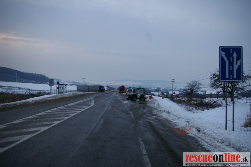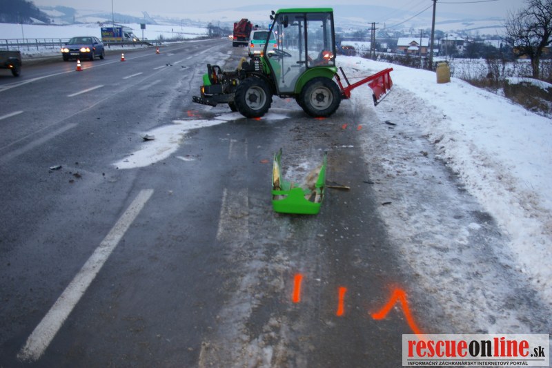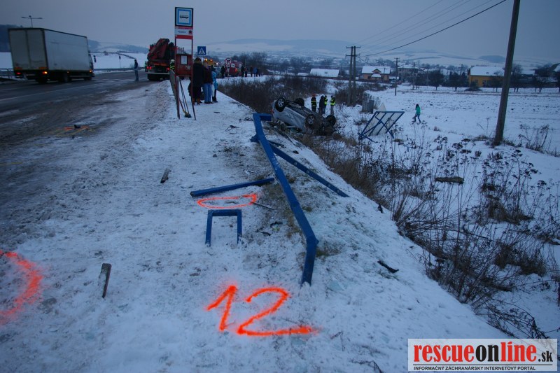Včase okolo14:48 h viedol v smere od Prešova 28 ročný muž osobné auto Volkswagen Tiguan. Pri výjazde na kopec pred MalýmŠariš zbadal vo svojom jazdnom pruhu obecný kolesový poľnohospodársky traktor, ktorý viedol 64 ročný muž. Obaja vodiči boli z obce Malý Šariš. Traktorprechádzal kolmo od zastávky MHD nachádzajúcej sa na strane v smere jazdy do Prešova, ku zastávke MHD v smere jazdy do Popradu.Vodič Volkswagenuzačal brzdiť, následkom čoho sa jeho motorové vozidlo dostalo do šmyku a zrazilo sa s traktorom. Následne autonarazilo do zastávky MHD, v ktorej sa nachádzala 37 ročná žena z obce Široké, okr. Prešov. Vozidlo zastávku spolu soženouzobralo so sebou a následne zišlo dole kopcom. Zrazená žena utrpela ťažké zranenia s dobou liečenia viac ako 42 dní a je hospitalizovaná v prešovskej nemocnici. Obaja vodičineutrpeli žiadne zranenia, ktoré by si vyžiadali lekárske ošetrenie.Dychová skúška na alkohol bola u nich negatívna. Hmotné škody zatiaľ vyčíslené neboli. Nehodu vyšetruje prešovský vyšetrovateľ, ktorý začal trestné stíhanie pre prečin ublíženia na zdraví.