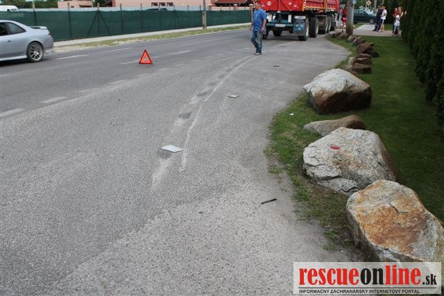 KRPZ Trnava |MM| Polícia vyšetruje dopravnú nehodu medzi nákladným autom a motocyklom, ktorá sa stala v pondelok (10.6.) asi o 17.00 h. Obaja účastníci dopravnej nehody boli na čerpacej stanici v obci Čierny Brod. Vodič Tatry vychádzal smerom na Mostovú, pričom vodič motocykla predchádzal nákladné auto z pravej strany. Narazil pri tom do predného kolesa nákladného auta, vzápätí spadol z motorky, ktorú nákladné auto tlačilo niekoľko metrov pred sebou. 24 ročný motorkár z Čiernej Vody utrpel pri nehode vážnejšie zranenia. Presné príčiny a okolnosti nehody polícia vyšetruje.