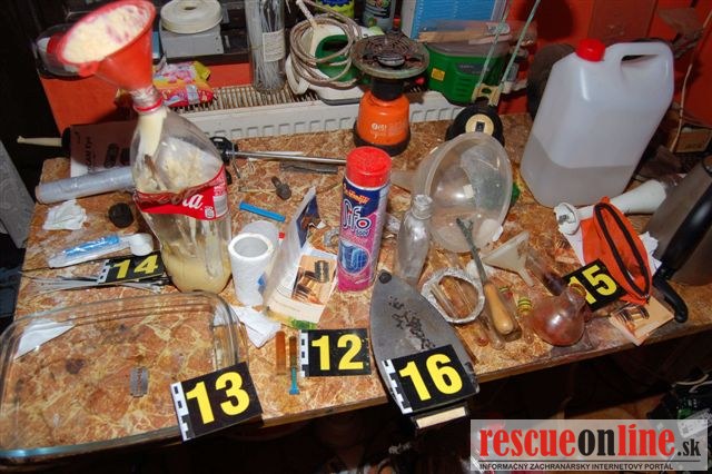 Policajti počas akcie vykonali domové a osobné prehliadky, zaistili kompletné laboratórium na výrobu metamfetamínu. Zaistené komponenty slúžiace na výrobu syntetickej látky policajti zaslali na kriminalisticko-expertízne skúmanie. Množstvo zaistených drog zodpovedá až 540 jednorazovým dávkam metamfetamínu. Policajti počas akcie zadržali jedného muža a jednu ženu.