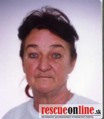 60 ročná nezvestná žena je asi 158 cm vysoká, štíhlej postavy. Má sivomodré oči a krátke vlnité vlasy zafarbené na bordovo.