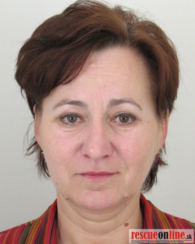 Popis osoby:nezvestná je 165 cm vysoká. Má oválnu tvár, hnedé oči a tmavohnedé, rovné vlasy s bordovým melírom, ostrihané na dĺžku asi 10 cm.