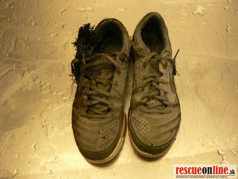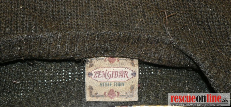 Popis oblečenia :tenisky zn. NIKE, šedej farby so žltou podrážkou zn. XDR BUBBER, veľkosť 28,5 cm (44,5), čierne aj fialové ponožky, tepláky bordovej farby – dva biele pásiky po bokoch, rifle zn. R-MARKS-JEANS, opasok zn. DALLAS s prackou, sveter zn. ZENGIBAR STYLE ITALY, vzorovaný, hnedo-čierno-fialovej farby s bielymi pásmi, modrá košeľa s priečnymi a pozdĺžnymi pásmi, tmavomodré tričko s krátkymi rukávmi, na ľavom rukáve s oranžovým nápisom „W, IN MADE 28O 85 TT 60“ zn. N-FEEL, veľkosť XL.