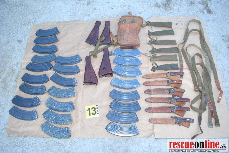 Filip L. v záhradnej chatke ukrýval guľomet československej výroby aj so štyrmi nábojmi. Vo vozidle mal tiež samonabíjaciu pištoľ slovenskej výroby kalibru 9 mm. Luger s dvoma zásobníkmi a jeden náboj so stredovým zápalom kalibru 45 Colt. V oboch prípadoch išlo o zbrane pôvodne oficiálne upravené ako expanzné a následne podomácky prerobené na streľbyschopné. Polícia pri domovej prehliadke u Jozefa K. našla samonabíjaciu guľovnicu ruskej výroby a zásobník. Zbraň bola pôvodne oficiálne expanzná, neskôr podomácky prerobená, aby z nej bolo možné strieľať ostrými nábojmi. Okrem toho u neho doma polícia objavila takmer 200 kusov nábojov rôzneho kalibru, väčšina z nich mala podomácky obrúsené hroty.