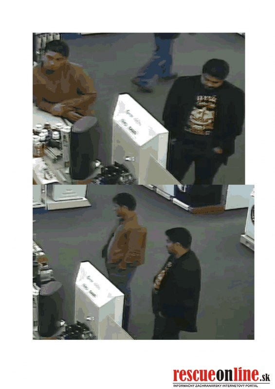 KRPZ Žilina |MM| Polícia v Lipt. Mikuláši žiada verejnosť o pomoc pri stotožnení podozrivých mužov zachytených priemyselnou kamerou. Dvojica mužov dňa 4.októbra okolo 12.30 hod. prišli do predajne elektrospotrebičov v obchodnom dome v Lipt. Mikuláši. Muži prejavili záujme o kúpu mobilných telefónov. Muži kladením otázok odpútavali pozornosť obsluhy a nepozorovane zo škatuliek vybrali a odcudzili obidva telefóny v celkovej hodnote 1.038,-€. Z predajne odišli na neznáme miesto.