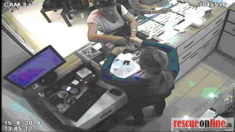 KRPZ Žilina |MM| Polícia v Liptovskom Mikuláši žiada verejnosť o pomoc pri stotožnení dvoch neznámych žien zachytených na záberoch z priemyselnej kamery. Ženy prišli dňa 15.augusta 2014 okolo 14.45 hodiny do predajne šperkov v obchodnom centre v Liptovskom Mikuláši. V predajni prejavili záujme o kúpu šperkov, vybrali si niekoľko kusov zlatých šperkov a tieto si nechali zabaliť. Pri balení neustále zabávali obsluhujúcu ženu. Počas balenia využili zaneprázdnenosť obsluhy a privlastnili si niekoľko kusov šperkov v hodnote najmenej 1.400,-€. Po zabalení tovaru predstierali, že nemajú dostatočnú hotovosť a musia si ísť peniaze zabezpečiť, že sa potom vrátia. Do predajne sa už nevrátili. Obsluhujúca žena napokon zistila, že niekoľko kusov šperkov počas ich návštevy zmizlo.
