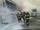 Prezídium HaZZ |MM| Hasiči momentálne zasahujú pri požiari na Veľkoúľanskej ulici v Sládkovičove. Požiar zasiahol jeden kamión a rozšíril sa na ďalšie dva vedľa stojace, pričom dva kamióny sú bez nákladu a v jednom sa nachádza náčinie do posilňovní. Pri udalosti zasahuje 8 profesionálov z Galanty a Serede a 4 dobrovoľní hasiči z Veľkých Úľan. Doposiaľ nedošlo k žiadnym zraneniam. Z dôvodu predbežne vyčíslenej škody na približne 300 tisíc eur smeruje na miesto expertízna skupina na zisťovanie príčin vzniku požiarov z PTEÚ.