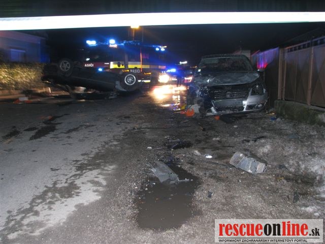 KR HaZZ Trnava | Na ohlasovňu požiarov OR HaZZ v Dunajskej Strede bola dňa 26.2.2013 o 19:46 hod. nahlásená prostredníctvom Koordinačného strediska IZS v Trnave dopravná nehoda dvoch osobných motorových vozidiel so zakliesnenými osobami na hlavnej ceste v obci Veľké Blahovo (okres Dunajská Streda). Na miesto udalosti boli vyslaní štyria príslušníci z hasičskej stanice v Dunajskej Strede s technikou MB ATEGO. Po príjazde na miesto zásahu a po vykonaní prvotného prieskumu bolo zistené, že na nahlásenom mieste prišlo k zrážke dvoch osobných motorových vozidiel značiek Mitsubishi Galant a VW Passat. Vo vozidle Mitsubishi sa nachádzali dve zakliesnené osoby a ďalšie dve osoby boli mimo vozidla. Do príchodu posádok ZZS príslušníci HaZZ poskytli zraneným osobám predlekársku prvú pomoc. Na vyslobodzovanie zakliesnených osôb bolo použité hydraulické vyslobodzovacie zariadenie. Službukonajúci lekár po vyslobodení u jednej osoby konštatoval exitus. Dvoch ťažko zranených a jedného ľahko zraneného účastníka previezli posádky ZZS na ďalšie vyšetrenia do zdravotníckeho zariadenia v Dunajskej Strede. Príslušníkmi HaZZ boli následne na oboch havarovaných vozidlách vykonané protipožiarne opatrenia, pozostávajúce z odpojenia akumulátorov. Na mieste udalosti sa nachádzali príslušníci PZ SR, ktorí riadili cestnú premávku a vyšetrovali okolnosti nehody, pričom zasahujúci príslušníci osvetľovali miesto udalosti pomocou osvetľovacieho agregátu. Po vykonaní vyšetrovacích úkonov bolo vozidlo Mitsubishi Galant prevrátené na kolesá pomocou lanového navijaku. Nakoľko z tohto vozidla uniklo malé množstvo prevádzkových kvapalín, hasiči uniknuté látky zozbierali a neutralizovali. Po vykonaní týchto činnosti, odovzdaní miesta udalosti príslušníkom PZ SR, zbalení vecných prostriedkov a zdokumentovaní udalosti sa hasičská jednotka vrátila o 23:10 hod. na svoju základňu. Celková bilancia tejto tragickej dopravnej nehody: 1 osoba usmrtená, 2 osoby ťažko a 1 osoba ľahko zranená.