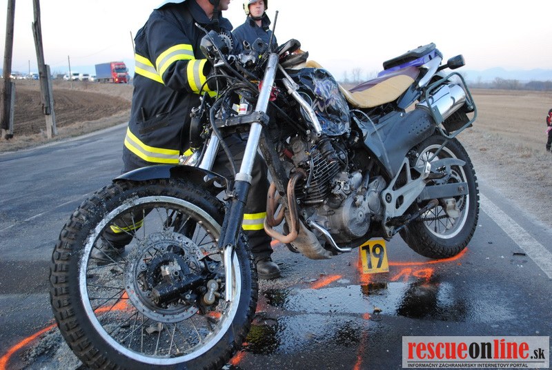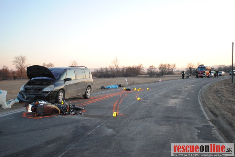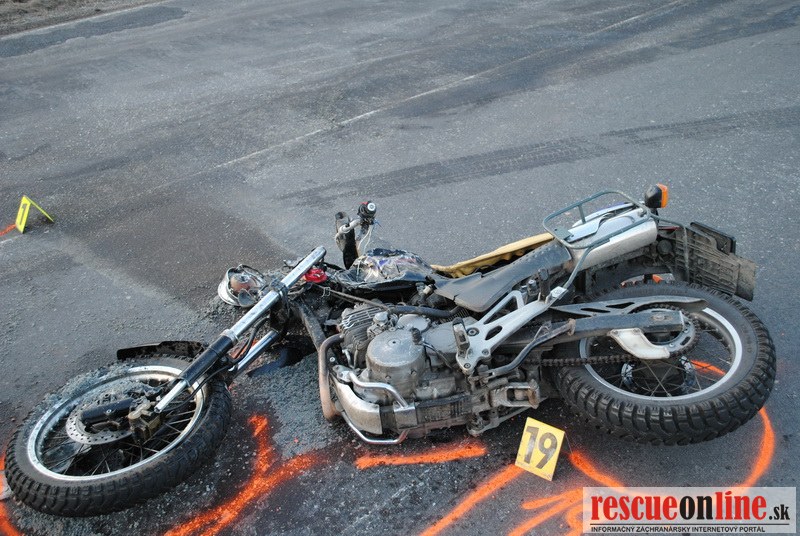 KRPZ Žilina |MM| V stredu 21. marca podvečer došlo k dopravnej nehode na ceste II medzi Martinom a Prievidzou. 37 ročný vodič motocykla Honda jazdil od obce Turčiansky Ďur na obec Moškovec. Pri prejazde tiahlou pravotočivou zákrutou z doposiaľ presne nezistených príčin začal motocyklista prechádzať do protismeru. Pravdepodobne v snahe vrátiť sa späť do svojho jazdného pruhu motocyklista nezvládol vedenie motocyklista, pričom spadol na vozovku, na pravý bok. V takejto polohe prešiel s motocyklom do protismeru, kde narazil do ľavej strany protiidúceho vozidla Renault Espace. Vodič Renaultu sa zrážke s motocyklistom snažil vyhnúť vpravo, pričom prešiel až za okraj vozovky. Pri dopravnej nehode utrpel 37 ročný motocyklista pochádzajúci z okresu Trnava, utrpel pri dopravnej nehode ťažké zranenia, ktorým napriek snahe záchranárov na mieste podľahol. Hmotná škoda na vozidlách je odhadnutá na cca 4.000,-€. Okolnosti a príčiny dopravnej nehody vyšetruje polícia v Martine.