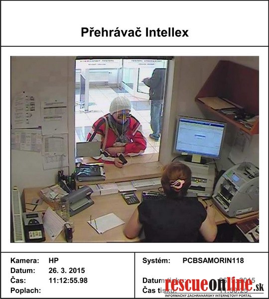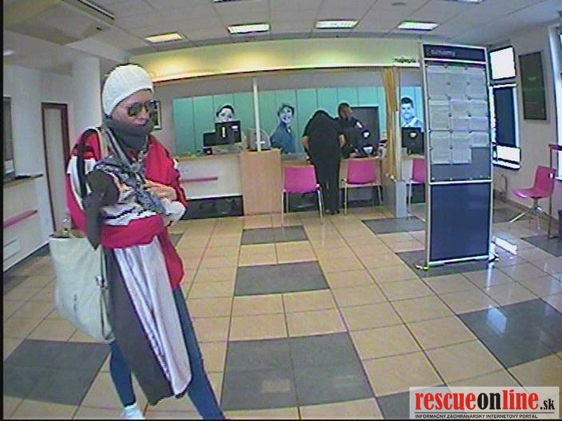 KRPZ Trnava |MM| Polícia vyšetruje zločin lúpeže, ktorý sa stal 26. marca o 11.00 h v banke v Šamoríne. Žena doteraz nezistenej totožnosti vošla do banky a pod hrozbou použitia zbrane vyzývala pracovníčku k vydaniu peňazí. Páchateľka mala na hlave bielu pletenú čiapku a sivozelený rolák vytiahnutý k tvári. Po slovách „daj všetky peniaze“ páchateľka z miesta ušla. Pri lúpeži k zraneniu osôb nedošlo a nebola ani spôsobená žiadna finančná škoda. Polícia bezprostredne po lúpeži zahájila pátranie po horúcej stope. Pátranie naďalej trvá a polícia žiada verejnosť o pomoc pri určení totožnosti ženy, ktorú zachytili bezpečnostné kamery. V prípade, ak ženu na záberoch poznáte, oznámte to polícii na čísle 158.