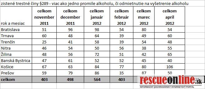 Prezídium PZSR |MM| Prehľadná tabuľka štatistiky trestného činu ohrozovania pod vplyvom návykovej látky od účinnosti novely zákona (od 1. novembra 2011) za jednotlivé mesiace a kraje (pozri prílohu).