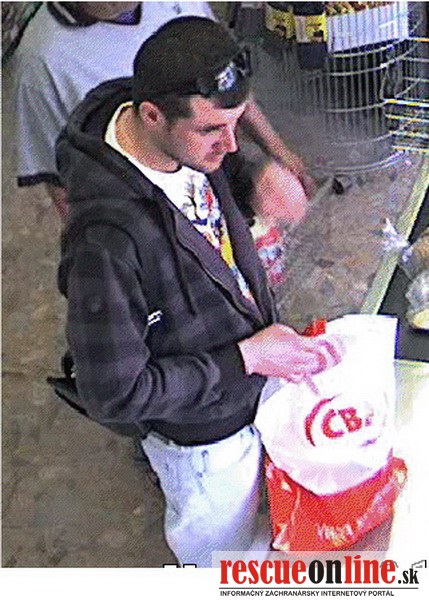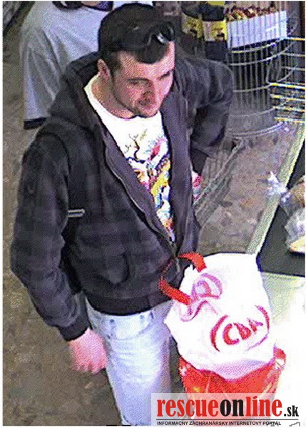 Podozrivým z uvedenia falošných peňazí do obehu je muž vo veku 25-30 rokov, bol vysoký asi 180 cm štíhlej postavy, mal nakrátko ostrihané tmavé vlasy s vystupujúcimi kútmi, podlhovastú tvár a bradu so strniskom. Oblečenú mal tmavohnedú mikinu s kapucňou s priečnymi a zvislými pásmi, biele tričko s farebným motívom, krátke svetlé nohavice po kolená, obuté mal čierne športové topánky, na hlave mal čierne slnečné okuliare a cez rameno prevesenú pánsku príručnú taštičku čiernej farby /viď. foto/.