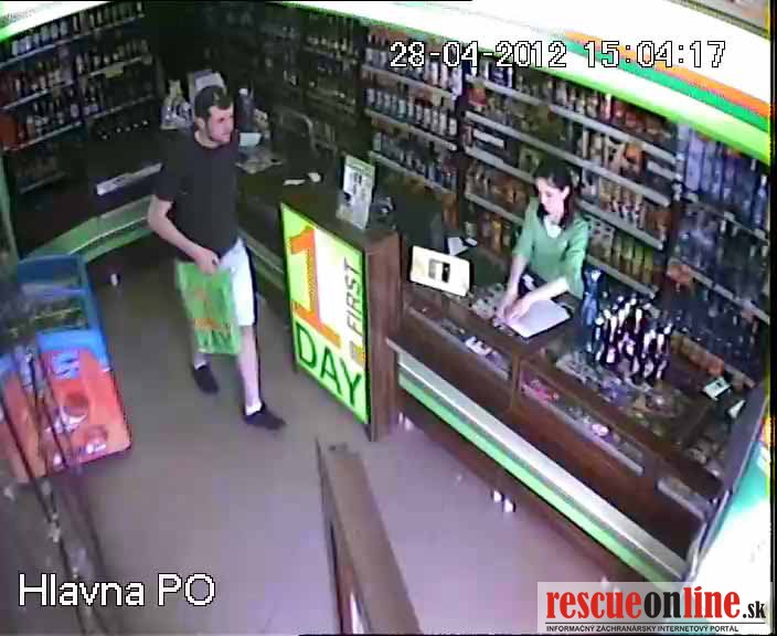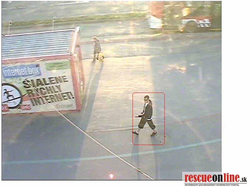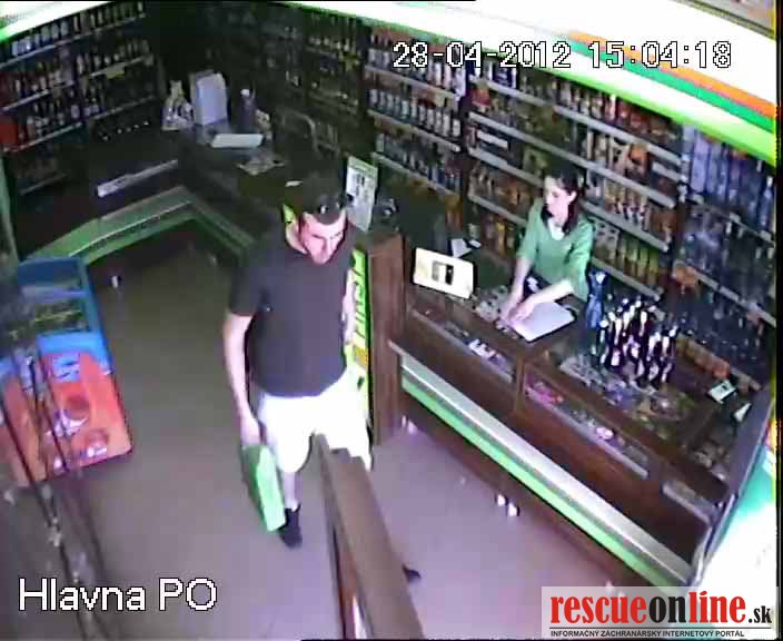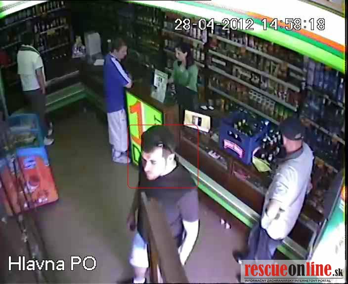 Prvý podozrivý muž bol vysoký asi 180 cm štíhlej postavy, mal nakrátko ostrihané tmavé vlasy s vystupujúcimi kútmi, podlhovastú tvár a bradu so strniskom. Oblečené mal čierne tričko s krátkym rukávom bez potlače, krátke rifľové nohavice, biele ponožky a čierne športové topánky, na hlave mal čierne slnečné okuliare a cez rameno prevesenú pánsku príručnú taštičku čiernej farby /viď. foto/.