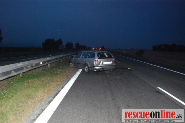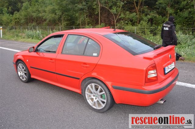 KRPZ Trnava |MM| Trnavská polícia vykonávala včera (11.7.) akciu zameranú na boj proti krádežiam áut. Okolo 03.00 h na diaľnici D1 pri výjazde na Bučany v smere od Piešťan zablokovali policajti cestu. Následne na to polícia zastavila tzv. sprievodné vozidlo Škodu Octavia RS červenej farby, v ktorej sedeli dvaja muži podozriví zo spolupáchateľstva - 19 ročný vodič z Hlohovca a 21 ročný spolujazdec z Dvorníkov. Polícia vykonala voči nim služobný zákrok a obmedzila ich na osobnej slobode. Auto Škoda Octavia striebornej farby, ukradnuté v Drietome (okr. Trenčín) sa pohybovalo v určitej vzdialenosti za sprievodným autom. Jeho vodič, keď videl, že došlo k policajnému zákroku, začal unikať pred políciou. V protismere na diaľnici D1 ohrozoval ostatných účastníkov cestnej premávky, pričom sa miestami rútil rýchlosťou až 200km/h. Policajti diaľničného oddelenia, zásahovej skupiny a kriminálnej polície auto prenasledovali. Na jeho zastavenie použili policajti 15 výstrelov, päť varovných do vzduchu a šiestimi priamo zasiahli unikajúce auto. 29 ročný vodič zo Zemianskych Sadov bol povrchovo zranený v zadnej časti tela. Následne nezvládol riadenie a narazil do zvodidiel, pričom jeho auto bolo odhodené do služobného auta Škoda Superb diaľničnej polície.