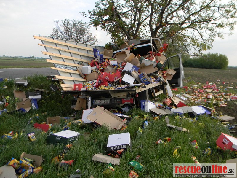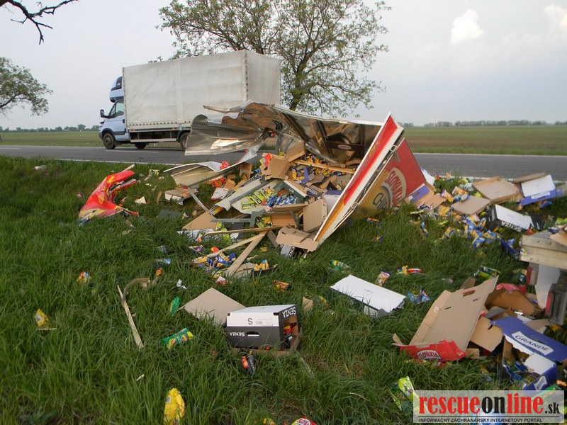 Na vozidle a náklade vznikla pri nehode škoda za asi 17.000,-€. Dychová skúška, ktorej policajti vodiča podrobili bola negatívna.