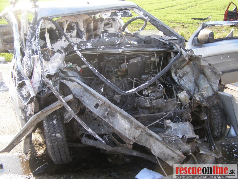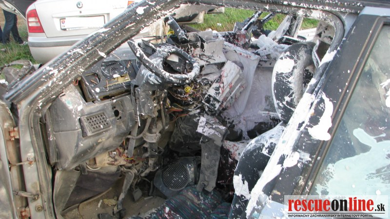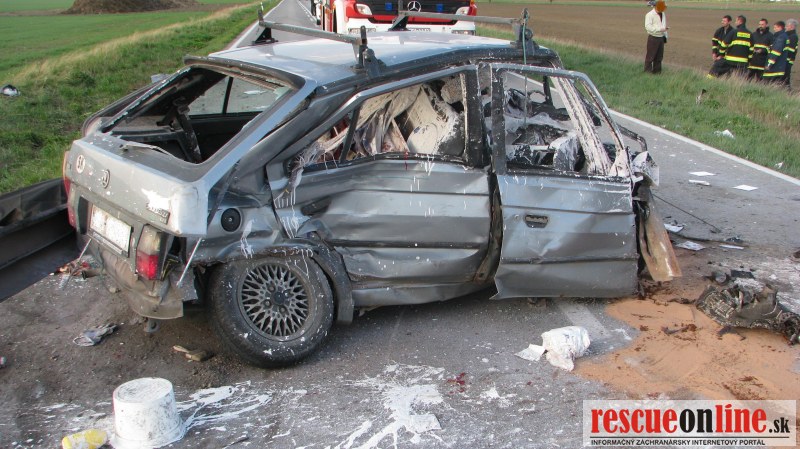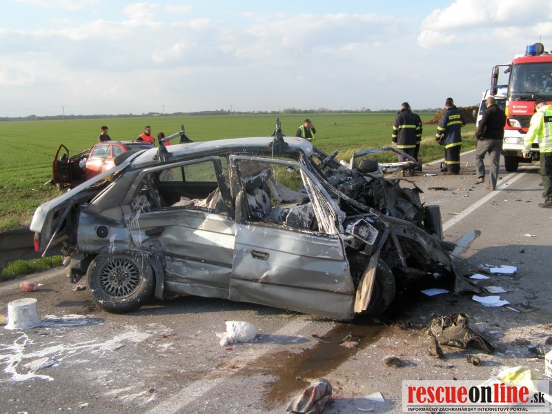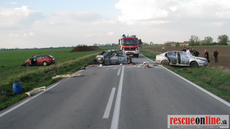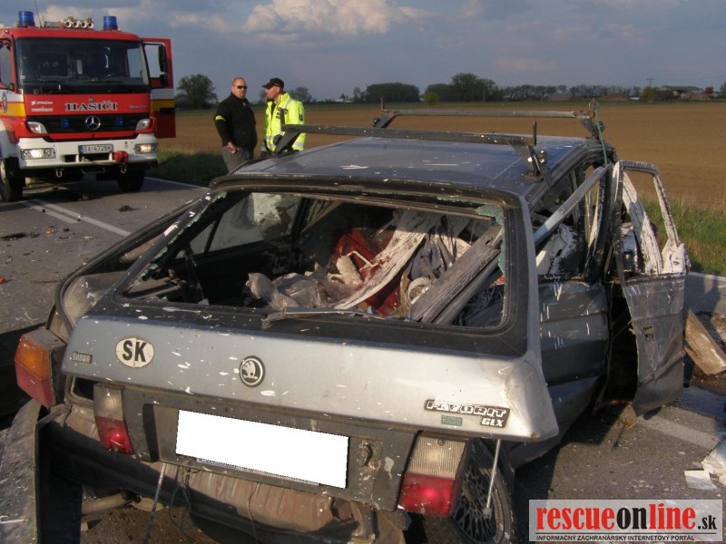 KR HaZZ Trnava |MM| Na ohlasovňu požiarov OR HaZZ v Galante bola v sobotu 21. apríla 2012 o 17:30 hod. ohlásená dopravná nehoda troch osobných motorových vozidiel so štyrmi zakliesnenými osobami na ceste č. 507 medzi Galantou a Čiernym Brodom pri odbočke na Javorinku. Výjazd bol vykonaný piatimi príslušníkmi HaZZ s technikou MB Atego. Po príjazde na miesto udalosti bolo zistené, že dve osobné motorové vozidlá boli mimo vozovky (Škoda Fabia a Škoda Octavia) a jedno v strede vozovky (Škoda Favorit). Vo vozidlách, ktoré boli mimo vozovky sa nenachádzali žiadne osoby. Vo vozidle v strede vozovky (Škoda Favorit) sa nachádzala jedna zakliesnená osoba, ktorú sa snažila vyslobodiť vodička z vozidla Škoda Fabia, ktoré bolo mimo cesty ale bez úspechu. Veliteľ zásahu nariadil vyslobodiť zakliesnenú osobu pomocou hydraulického zariadenia. Jednotka odstrihla vodičové dvere na vozidle a osobu odovzdala lekárke RLP Galanta, ktorá sa dostavila na miesto tesne za jednotkou HaZZ. Lekárka RLP skonštatovala smrť vodiča vozidla Škoda Favorit. Spolujazdkyňa z vozidla mimo cesty (Škoda Fabia) bola ošetrovaná okoloidúcou sestričkou. Posádka vozidla Octavia nebola zranená. Následne sa na miesto udalosti dostavila aj RZP Galanta a hliadka Polície Galanta. Polícia uzavrela cestu v obidvoch smeroch. Veliteľ zásahu túto skutočnosť ohlásil na Operačné stredisko KR HaZZ v Trnave a zároveň vyžiadal vyrozumieť správcu komunikácie z dôvodu, že na vozovke a mimo vozovky bolo veľa úlomkov a častí havarovaných vozidiel a väčšie množstvo maliarskej farby z vozidla Favorit. Po zistení, že už žiadne ďalšie osoby nepotrebujú ošetrenie boli príslušníkmi HaZZ odpojené akumulátory na všetkých vozidlách a sorpčnou látkou posypané a ohraničené vytečené prevádzkové kvapaliny. Zranenú spolujazdkyňu z vozidla Fabia odviezlo vozidlo RLP Galanta na ďalšie ošetrenie do NsP Galanta. Jednotka po zotmení osvetľovala miesto udalosti počas dokumentovania Políciou Galanta. Po zadokumentovaní nehody boli Políciou Galanta povolané tri vozidlá odťahovej služby a jedno vozidlo Pohrebnej služby. Po odvoze usmrtenej osoby Pohrebnou službou jednotka HaZZ pomohla pri naložení havarovaných vozidiel na vozidla odťahovej služby a následne v spolupráci s čatou správcu komunikácie očistila komunikáciu. Jednotka HaZZ sa po ukončení zásahu o 20:46 hod. vrátila na základňu.