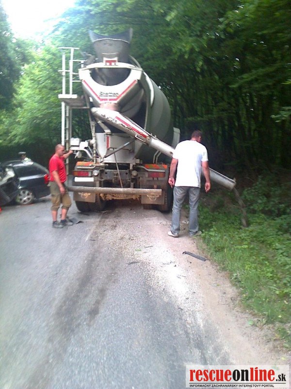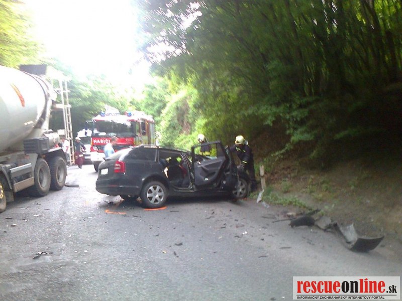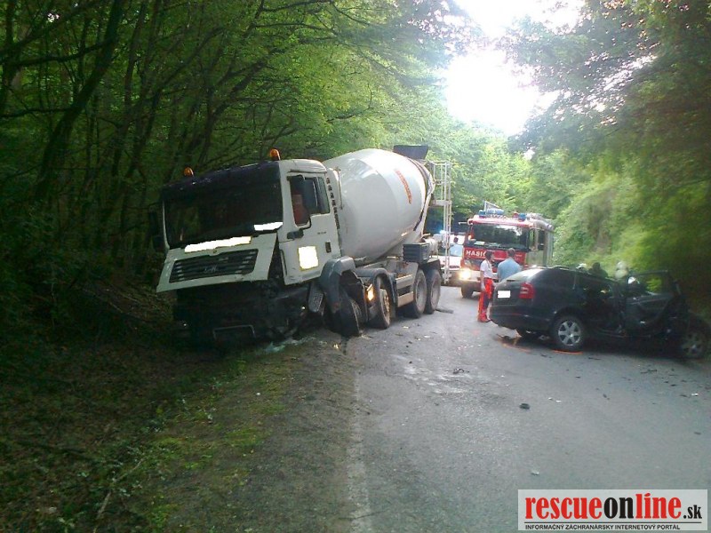 KR HaZZ Trnava | Na ohlasovňu požiarov hasičskej stanice v Hlohovci bola dňa 23. mája 2012 o 17:37 hod. prostredníctvom Koordinačného strediska IZS v Trnave nahlásená dopravná nehoda dvoch osobných motorových vozidiel a jedného nákladného vozidla na štátnej ceste č. 514 za Hlohovcom v smere na Topoľčany. Na miesto udalosti boli vyslaní traja príslušníci s technikou Mercedes Benz Atego. Po príchode na miesto udalosti bolo prieskumom zistené, že sa jedna o dopravnú nehodu jedného osobného motorového vozidla značky Škoda Octávia, ktoré sa nachádzalo na cestnej komunikácii a jedného nákladného vozidla – domiešavača betónu značky MAN TGA, ktoré sa nachádzalo z časti mimo cestnej komunikácie. Na mieste udalosti sa nachádzala záchranná zdravotná služba (ZZS) z Hlohovca, ktorá poskytovala prvú pomoc zraneným osobám. Veliteľ zásahu bol po konzultácii s ošetrujúcim lekárom informovaný o tom, že tri osoby podľahli zraneniam na mieste nehody, dve osoby boli ťažko a jedna ľahko zranená. Príslušníci HaZZ okamžite začali s ošetrovaním a stabilizáciou jednej postihnutej osoby až do príchodu ďalšieho vozidla ZZS. Po ich príchode bol jeden príslušník vyslaný na zabezpečenie voľného priestranstva pre povolaný vrtuľník Leteckej záchrannej služby (LZS) a zvyšní príslušníci pomáhali lekárom pri resuscitácii a poskytovaní prvej pomoci zraneným osobám. Na miesto udalosti sa následne dostavili príslušníci PZ SR z Hlohovca a ďalšie hasičské jednotky z Piešťan (traja príslušníci s technikou Mercedes Benz Vario) a z Topoľčian (traja príslušníci s technikou Mercedes Benz Atego). Po ošetrení a stabilizácii postihnutých osôb bola jedna osoba aj s nosidlami naložená do automobilu Mercedes Benz Atego z Topoľčian a za stálej resuscitácie bola prepravená k vrtuľníku LZS, ktorý sa nachádzal asi 500 metrov od miesta nehody pri krajnici cesty. Druhá zranená osoba bola naložená na nosidlá a prenesená do sanitného vozidla ZZS. Štátna cesta č. 514 bola v oboch smeroch uzatvorená príslušníkmi PZ SR a doprava bola presmerovaná cez priľahlé obce. Po zdokumentovaní nehody Políciou boli dve mŕtve osoby za pomoci hydraulického vyslobodzovacieho náradia vytiahnuté z vraku vozidla, tretia mŕtva osoba sa nachádzala mimo vozidla – pravdepodobne preletela cez čelné sklo. Po odovzdaní ťažko zranenej osoby lekárom LZS sa bohužiaľ ani túto nepodarilo zachrániť a podľahla rozsiahlym zraneniam ešte pred odletom vrtuľníka LZS. Následne sa po konzultácii s veliteľom zásahu vrátili príslušníci HaZZ s Topoľčian na základňu. Po príchode súdneho lekára na miesto udalosti bolo obhliadkou zistené, že štyri osoby podľahli rozsiahlym devastačným poraneniam. Jedna ľahko zranená osoba bola naložená a odvezená lekárskou zdravotnou službou Leopoldov. Následne na základe rozhodnutia veliteľa zásahu sa na základňu vrátili aj príslušníci HaZZ z Piešťan. Príslušníci HaZZ z Hlohovca zostali na vyžiadanie Polície prostredníctvom KS IZS v Trnave na mieste nehody, nakoľko bolo potrebné vykonávať asistenčné práce pri sprejazdňovaní cesty a odťahovaní vrakov z cestnej komunikácie. Na miesto nehody sa dostavila odťahová služba a traktor s radlicou, ktorý odhŕňal vysypaný betón v objeme cca. 7 metrov kubických z domiešavača mimo komunikáciu. Na miesto sa dostavila aj pohrebná služba, ktorá naložila usmrtené osoby do svojich vozidiel. Betón z havarovaného domiešavača bol vyliaty účelne, nakoľko hrozilo prevrátenie vozidla pri jeho odťahovaní. Po odtiahnutí havarovaných vozidiel príslušníci HaZZ očistili cestnú komunikáciu a posypali sorpčnými látkami vytečené prevádzkové kvapaliny (chladiacu zmes). Po zdokumentovaní udalosti a zbalení vecných prostriedkov sa hasičská jednotka o 22:24 hod. vrátila späť na základňu.