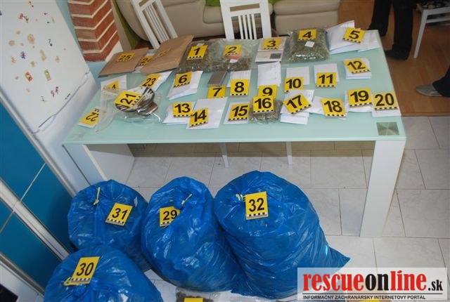 KRPZ Trnava |MM| Policajná hliadka, 23. januára, na Nábreží Kolomana Fodora v Piešťanoch, kontrolovala posádku osobného auta Škoda Fabia. Počas kontroly policajti zistili, že traja muži vo veku 22,27 a 29 rokov a žena vo veku 24 rokov u seba neoprávnene prechovávali 101 dávok marihuany. Z vyšetrovania vyplynulo, že drogy mali kúpiť v rodinnom dome v Piešťanoch. Následne na to, na základe operatívnych informácii, vykonali 26. januára, u 60 ročného muža domovú prehliadku v rodinnom dome na Ul. Díčovej v Piešťanoch. Prehliadku vykonali pre podozrenie, že majiteľ domu mal v priestoroch rodinného domu pestovať a predávať marihuanu. Počas prehliadky policajti v skleníku našli zelené rastliny a v dome väčšie množstvo zelenej rastlinnej sušiny. Zaistený materiál sa podrobil expertíznemu skúmaniu. Expertíza potvrdila, že sa jedná o marihuanu, z ktorej by sa dalo vyrobiť až 9344 jednorazových dávok drogy v hodnote minimálne 8372,-€. Vyšetrovateľ v týchto dňoch obvinil z drogovej trestnej činnosti 60 ročného muža z Piešťan. V prípade dokázania viny mu za tento skutok hrozí trest odňatia slobody na desať až pätnásť rokov. Obvineným trom mužom z Piešťan vo veku 22, 29 a 27 rokov a žene z Piešťan vo veku 24 rokov hrozí za tento skutok trest odňatia slobody na štyri až desať rokov.
