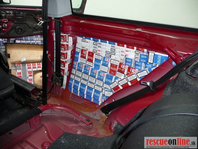 Ako informovala hovorkyňa Colného úradu Trnava Iveta Švárna, po dôkladnej kontrole automobilu colníci odhalili pod čalúnením všetkých bočných dverí, ako aj pod bočnými obloženiami v časti zadných sedadiel a v operadle zadného sedadla až 1 400 spotrebiteľských balení čo predstavuje 28 000 kusov nelegálnych cigariet, ktoré neboli označené slovenskými kontrolnými známkami. Škoda na spotrebnej dani z tabakových výrobkov, ktorá by vznikla štátu uvedením tohto tovaru na trh, bola vyčíslená na 2 651 eur.