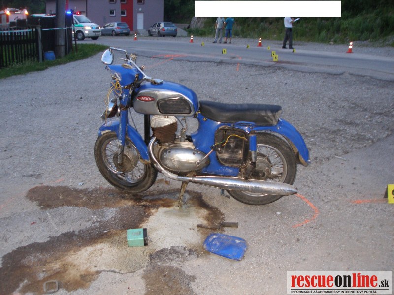 KRPZ Žilina |MM| K dopravnej nehode, na ktorej mal účasť motocyklista došlo v utorok 19. júna vo večerných hodinách na ceste III. triedy v obci Dlhá nad Kysucou. 21 ročný motocyklista viedol bez príslušného vodičského oprávnenia motocykel Jawa 250 po hlavnej ceste v obci Dlhá nad Kysucou. Pri predajni potravín motocyklistovi nedal prednosť v jazde vodič (46) Škody Fábia vchádzajúci na cestu z miesta ležiaceho mimo cesty. Došlo k zrážke, pri ktorej utrpel motocyklista ťažké zranenia a jeho spolujazdec (27) vyviazol s ľahkými poraneniami. Alkohol u vodiča polícia pri dychovej skúške nezistila. U motocyklistu bol nariadený odber krvi. Hmotná škoda na vozidlách je odhadnutá na cca 2500,- €. Vyšetrovanie dopravnej nehody prevzal vyšetrovateľ. Okolnosti nehody sú predmetom vyšetrovania.