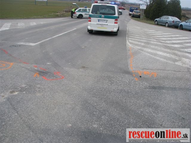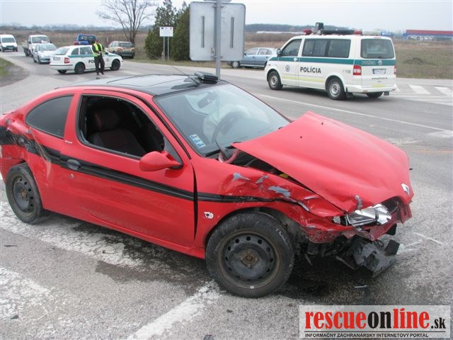 KRPZ Trnava |MM| V utorok o 14.00 h došlo na križovatke pri obci Kostolné Kračany (okr. Dunajská Streda) k dopravnej nehode medzi osobným autom Renaul Megane a Škoda Fabia. 23 ročný vodič Renaultu z obce Horný Bar pravdepodobne nerešpektoval dopravnú značku „Stoj, daj prednosť v jazde“ a vošiel do dráhy po hlavnej ceste prichádzajúcej Fabie. V dôsledku zrážky došlo k zraneniu 58 ročnej vodičky Škody Fabia z Orechovej Potône, s predpokladanou dobou liečby nad 6 týždňov. Mladý vodič utrpel otras mozgu a do týždňa by mal byť vyliečený. Dopravná nehoda sa zaobišla bez alkoholu. Presné príčiny a okolnosti dopravnej nehody polícia vyšetruje. Zároveň apelujeme najmä na mladých a neskúsených vodičov, aby jazdili opatrne a rešpektovali dopravné značenie a dopravné predpisy.