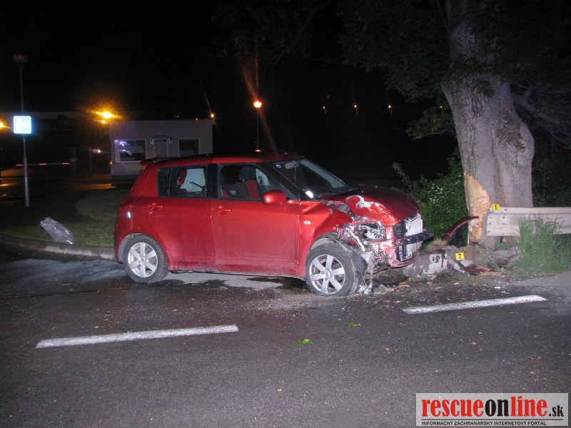 V sobotu 12. mája vo večerných hodinách zavinil podgurážený vodič z Čadce dopravnú nehodu na miestnej komunikácii v obci Gbeľany. 27 ročný vodič na vozidle Suzuki Swift pri vjazde do križovatky s cestou II. triedy z dôvodu neprispôsobenia rýchlosti jazdy stavu a povahe vozovky a svojím schopnostiam, dostal na mokrom povrchu vozovky šmyk. Následne havaroval mimo vozovku do zvodidiel a stromu. Pri dopravnej nehode sa zranila 30 ročná spolujazdkyňa, ktorá bola prevezená do žilinskej nemocnice. Vodič vyviazol bez zranení. Pri dychovej skúške policajti vodičovi namerali 1.01 mg/l alkoholu v dychu (v prepočte 2,10 promile). Hmotná škoda je odhadnutá na cca 4.100,-€. 27 ročný muž čelí obvineniu z prečinu ohrozenia pod vplyvom návykovej látky. V prípade preukázania viny mu hrozí trest odňatia slobody až na jeden rok. (viď foto č.8273)