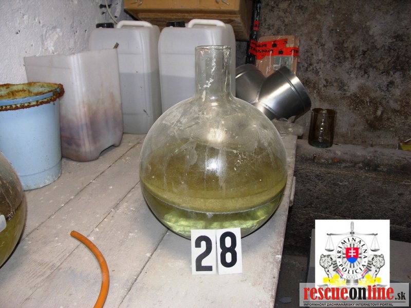 Začiatkom mája aj slovenská polícia zaistila v priestoroch firmy patriacej Holanďanovi rôzne chemické preparáty, listinné dôkazy, návody na výrobu omamných látok, zariadenie na výrobu tabliet a ďalší materiál nasvedčujúci prepojenie s laboratóriom odhaleným v Belgicku. Za dômyselne ukrytou dvojitou stenou policajti odhalili laboratórium slúžiace na výrobu drog. Policajti ďalej zaistili viac ako 1,4 tony chemickej látky v kovových bareloch s označením gammabutyrolacton (GBL). V priebehu vyšetrovania expertízne skúmanie potvrdilo, že zaistená látka GBL je psychotropná látka zaradená v III. skupine zoznamu omamných a psychotropných látok. Zo zaisteného a zatiaľ preskúmaného množstva by bolo možné podľa znaleckého posudku pripraviť 1,5 milióna jednorazových dávok. Hodnota tejto drogy, na čiernom trhu predávanej ako „tekutá extáza“ sa pohybuje až do 4,2 miliónov eur.