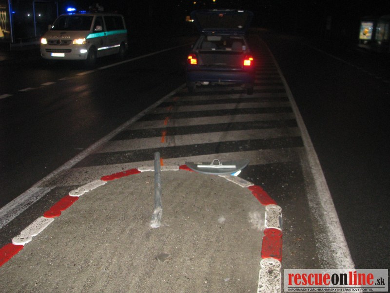 Pri tejto nehode narazila modrá Škoda Felícia do dopravného značenia na stredovom ostrovčeku.