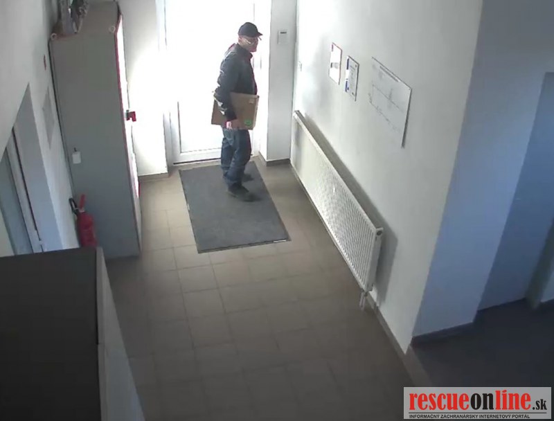 Muž na záberoch bezpečnostnej kamery má asi 50 rokov. Je vysoký približne 175 cm, strednej postavy. Oblečené mal modré rifle, tmavú bundu. Na hlave mal šiltovku a dioptrické okuliare. Počas pobytu v budove niesol hnedý balík so zelenou nálepkou.