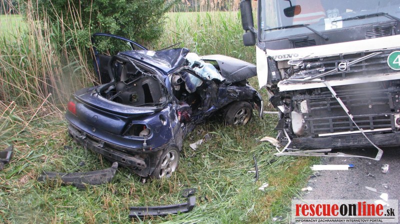 KRPZ Trnava |MM| Polícia vyšetruje dopravnú nehodu, ktorá sa stala dnes (6.5.), krátko pred šiestou hodinou, medzi obcami Veľké Úľany a Jánovce (okr. Galanta). 21 ročný vodič z Veľkých Úľan viedol osobné auto Opel v smere na Jánovce. V pravotočivej zákrute neprispôsobil rýchlosť jazdy poveternostným podmienkam a prešiel do protismeru, kde sa čelne zrazil s oproti idúcim kamiónom, ktorý viedol 64 ročný muž z Hrubej Borše (okr. Senec). Počas dopravnej nehody vodič osobného auta utrpel zranenia, ktorým na mieste podľahol. Alkohol u vodiča nákladného auta zistený nebol. To, či vodič osobného auta požil pred jazdou alkohol určí až súdna pitva.