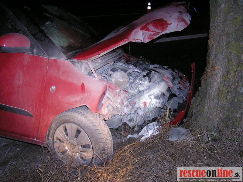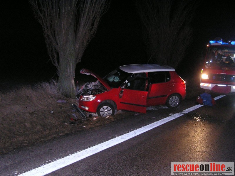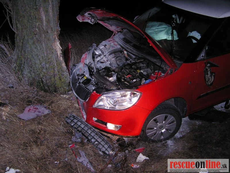 KRPZ Trnava |MM| Na OR HaZZ v Trnave bola v pondelok 20. februára 2012 o 20:19 hod. nahlásená dopravná nehoda osobného motorového vozidla, ktoré narazilo do stromu na št. ceste Trnava - Bučany. Na miesto udalosti boli z hasičskej stanice Trnava vyslaní štyria príslušníci HaZZ s hasičskou technikou MB Vario. Po príjazde na miesto udalosti bolo prieskumom zistené, že osobné motorové vozidlo Škoda Fabia sa nachádza narazené do stromu prevrátené na bok a bolo z neho viditeľné dymenie. Príslušníci HaZZ zistili, že dymenie bolo spôsobené pyropatrónmi z airbagov. Vo vozidle sa nachádzal zranený 28 ročný vodič vozidla. Príslušníci HaZZ vnikli do vozidla cez sklo na zadných dverách. Zranená osoba bola zafixovaná pomocou krčnej a celo chrbticovej dlahy, následne vyslobodená z vozidla a odovzdaná do starostlivosti posádke ZZS. Súčasne príslušníci HaZZ zabezpečili vozidlo proti vzniku požiaru odpojením akumulátorovej batérie a úniku prevádzkových kvapalín. Následne bolo vozidlo príslušníkmi HaZZ prevrátené na kolesá. Miesto udalosti bolo počas celého zásahu a počas dokumentácie dopravnej nehody osvetľované osvetľovacím agregátom zo zásahového vozidla. Po príchode odťahovej služby príslušníci HaZZ pomohli pri naložení havarovaného vozidla na vozidlo odťahovej služby. Po ukončení zásahu sa jednotka o 21:44 hod. vrátila na základňu.
