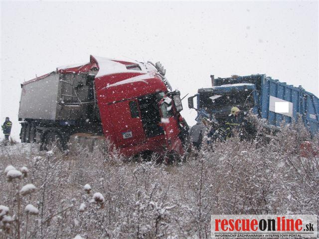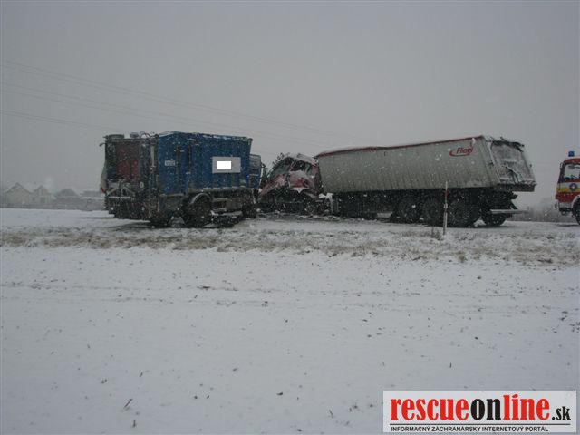 KRPZ Trnava |MM| Polícia vyšetruje dopravnú nehodu, ktorá sa stala 21. Decembra 2011, o pol dvanástej, na ceste č. II/499. 63 ročný vodič z Piešťan viedol nákladné auto Volvo smerom od Vrbového na Trebatice. V pravotočivej zákrute neprispôsobil rýchlosť jazdy, následok čoho prešiel do protismeru, kde sa čelne zrazil s protiidúcim nákladným autom Man, ktoré viedol 39 ročný muž z Piešťan. Obaja vodiči sa pri dopravnej nehode zranili ťažko. Spolujazdci z vozidla Volvo, 30 ročný muž z obce Pobedím (okr. Nové Mesto nad Váhom) a 40 ročný muž z obce Likavka (okr. Ružomberok) utrpeli ľahké zranenia. Alkohol u vodičov zistený nebol. Škoda na vozidlách vznikla 55.000,-€. Vyšetrovateľ z prečinu ublíženia na zdraví obvinil 63 ročného muža z Piešťan. V prípade dokázania viny mu za tento skutok hrozí trest odňatia slobody na jeden až päť rokov.