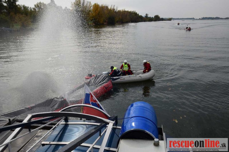 KR HaZZ Trnava |MM| Včera (17. októbra 2018) sa v Piešťanoch na vodnej nádrži Sĺňava uskutočnilo taktické cvičenie Krajského riaditeľstva Hasičského a záchranného zboru v Trnave so zriadením štábu. Námetom cvičenia bola zrážka plavidiel s následným požiarom. Cieľom cvičenia bolo preveriť pripravenosť hasičských jednotiek na vykonávanie zložitých zásahov s veľkým počtom zasahujúcich príslušníkov, preveriť súčinnosť zložiek integrovaného záchranného systému, vykonávať a zabezpečovať výkon špecifických činností zameraných na záchranu zranených osôb, likvidáciu požiaru a ochranu životného prostredia, preveriť zložky IZS pri nasadzovaní síl a prostriedkov potrebných pre vyslobodzovanie a záchranu osôb. Taktické cvičenie bolo zamerané na spôsob poskytnutia predlekárskej prvej pomoci zasahujúcich príslušníkov zraneným osobám a spôsob vyslobodzovania osôb z plavidla zasahujúcimi príslušníkmi, záchranu osôb z vodnej hladiny pomocou m-t prostriedkov potrebných na likvidáciu požiaru na plavidle a vykonanie protipožiarnych opatrení. Na cvičení sa zúčastnilo 56 hasičov z hasičských staníc Hlohovec, Piešťany, Trnava, Sereď, Galanta, Senica, Holíc, Dunajská Streda, Kúty a Šamorín, príslušníci Polície, Mestská polícia Piešťany a dve posádky ZZS. V úlohe zranených osôb sa zúčastnili študenti Strednej zdravotníckej školy v Trnave, príslušníci KR HaZZ v Trnave a členovia DHZO.