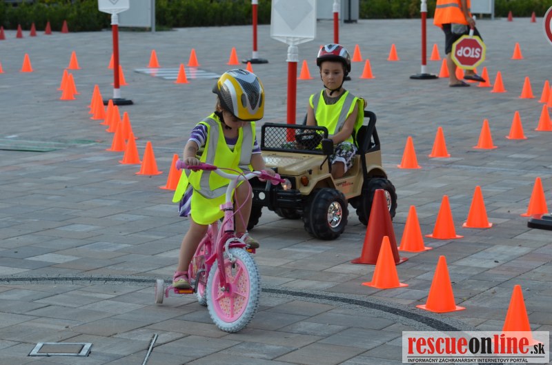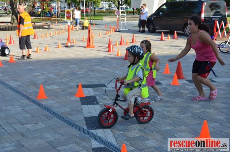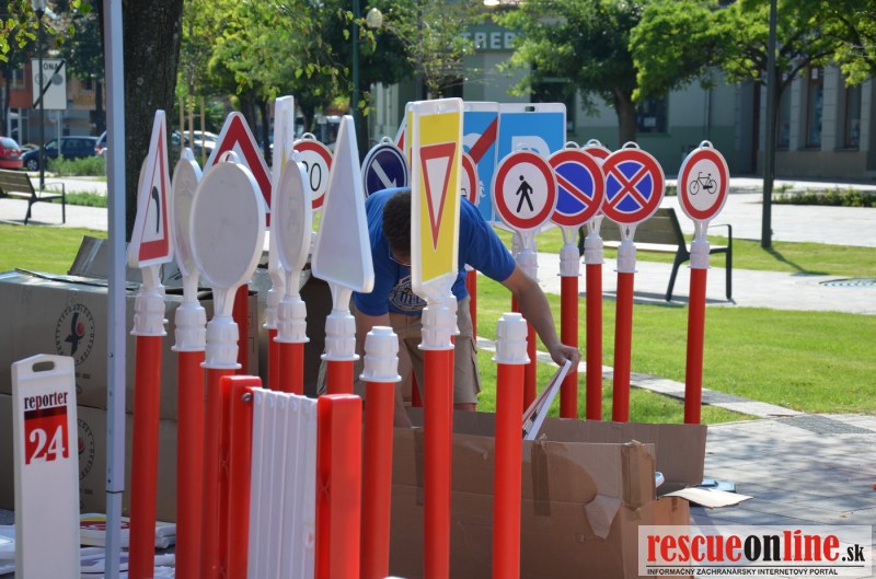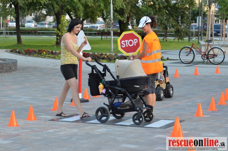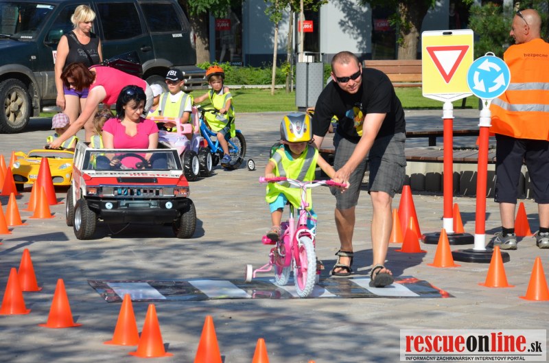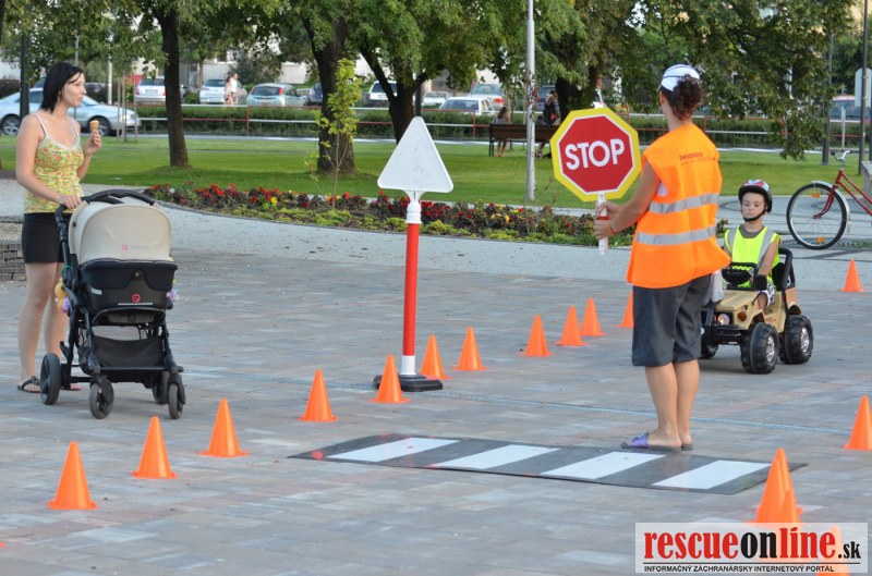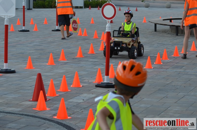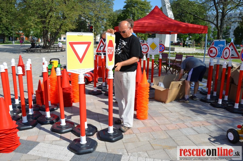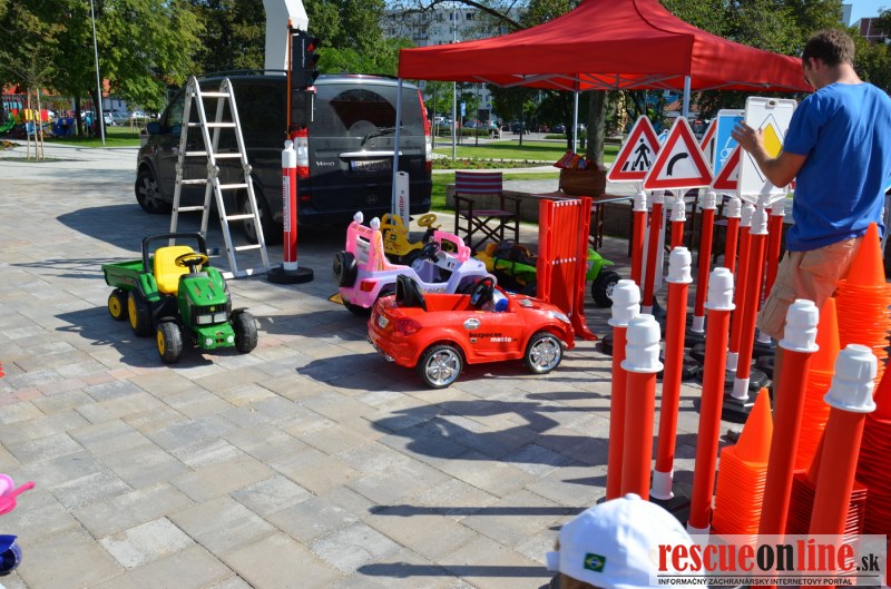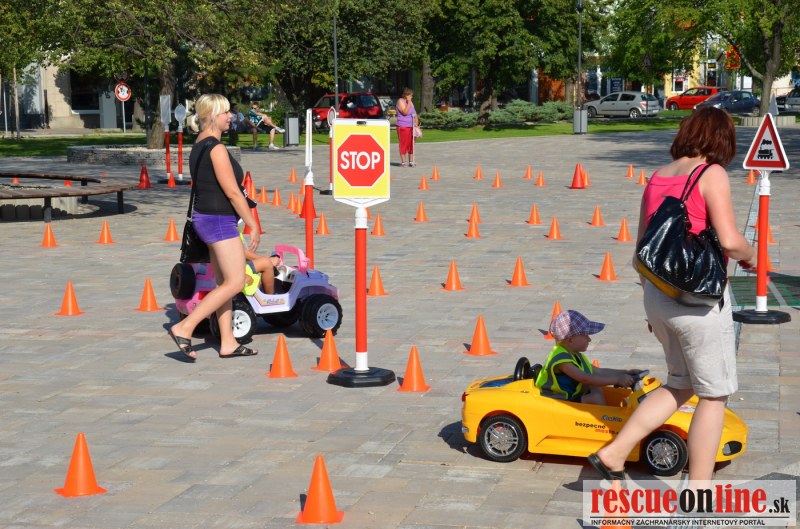 Až päťdesiat dopravných značiek, semafor, kužeľmi vytýčené cesty, priechody pre chodcov, železničná trať a samozrejme že detské bicyklíky, kolobežky a elektrické autíčka, o ktoré bol najväčší záujem. To je iba základ mobilného detského dopravného ihriska, ktoré práve včera zažilo svoju vážnu zaťažkávajúcu skúšku. Obstáli detičky a snáď aj organizátori.