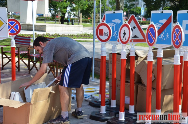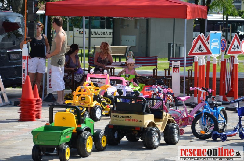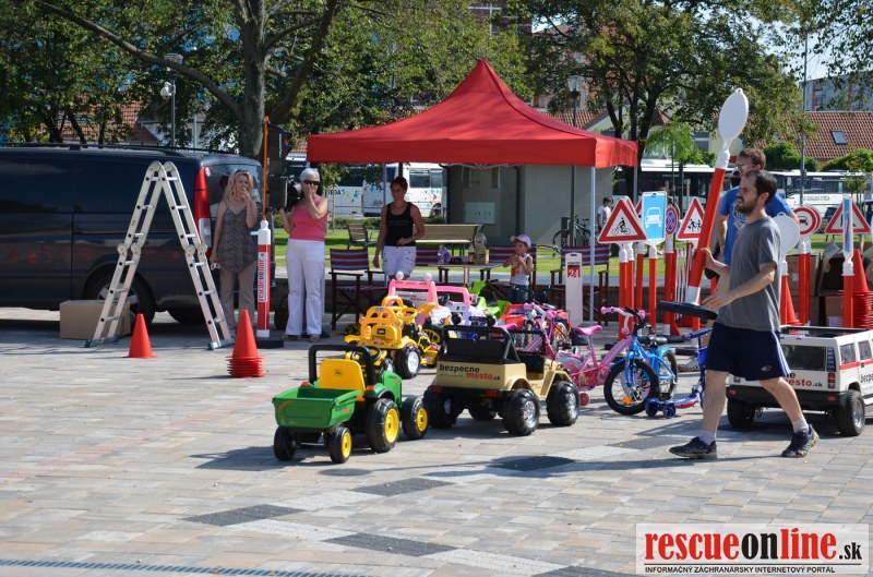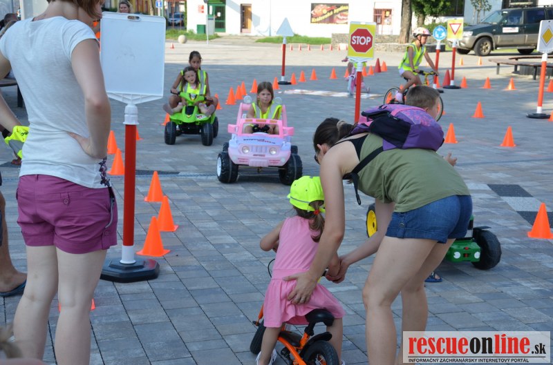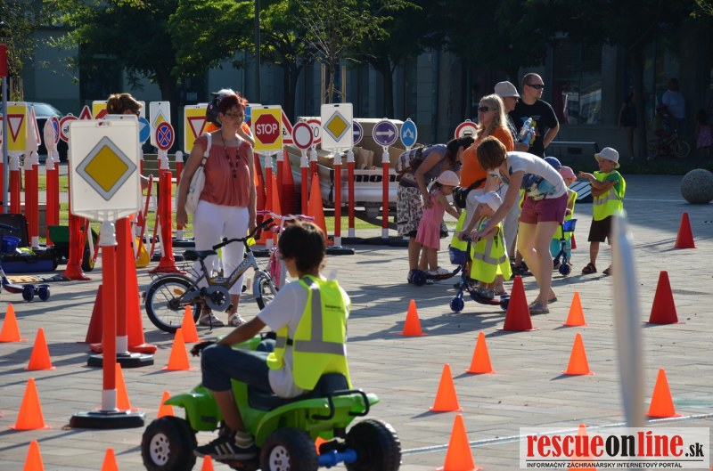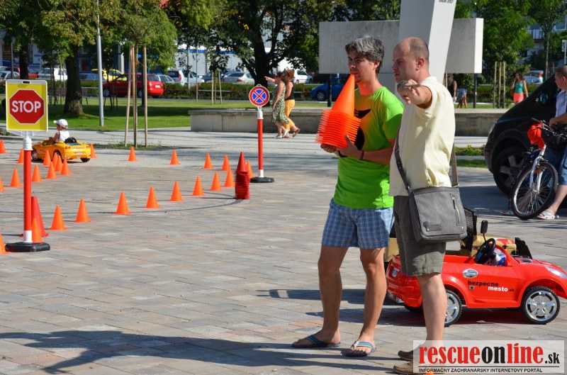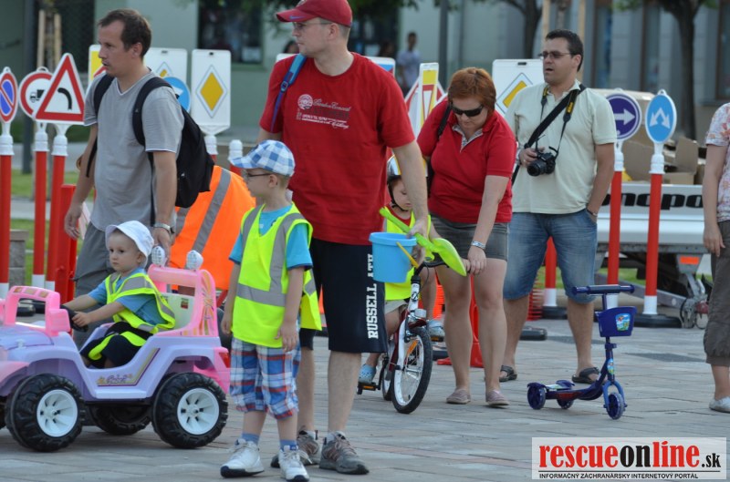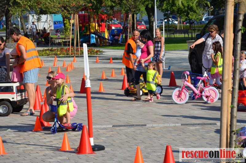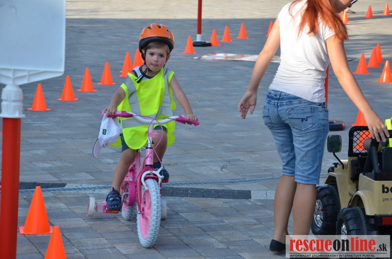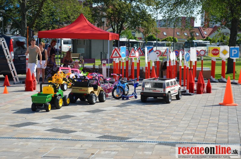Až päťdesiat dopravných značiek, semafor, kužeľmi vytýčené cesty, priechody pre chodcov, železničná trať a samozrejme že detské bicyklíky, kolobežky a elektrické autíčka, o ktoré bol najväčší záujem. To je iba základ mobilného detského dopravného ihriska, ktoré práve včera zažilo svoju vážnu zaťažkávajúcu skúšku. Obstáli detičky a snáď aj organizátori.