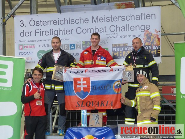 MVSR |MM| Dňa 4. a 5. novembra 2017 sa v Rakúskom Grazi konal 3. ročník medzinárodnej hasičskej súťaže pod názvom Austrian Firefighter Combat Challenge. Na súťaži medzi sebou súperilo 9 krajín, a to Rakúsko, Nemecko, Švajčiarsko, Slovinsko, Chorvátsko, Anglicko, Česko, Maďarsko a Slovensko. Slovenské farby na tomto medzinárodnom podujatí reprezentovali: Adrian Ficik z TFA Team Slovakia, Jozef Zsigó a Zoltán Zsigó z DHZ Zlaté Klasy. Súťaž pozostávala z viacerých po sebe nasledujúcich disciplín. Pri plnení jednotlivých úloh je súťažiaci oblečený v úplnej hasičskej výstroji a používa autonómny dýchací prístroj, ktorý značne sťažuje plnenie jednotlivých súťažných disciplín. Súťažilo sa v kategóriách jednotlivcov, tandemov a v štafetách, pričom súťažia muži, ženy a zmiešané páry.
